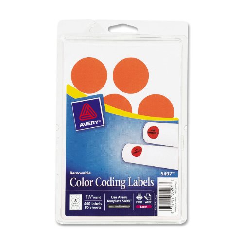 Read main features below to know more about Avery Removable Print or Write Color Coding Labels for Laser Printers, 1.25 Inches, Round, Pack of 400 (5497).You can compare with another product for color label printer