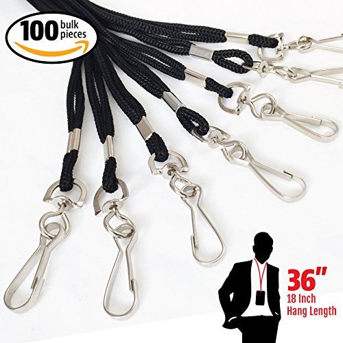 The Grandstand Ink - Black Badge Holder / Neck Lanyard - Bulk (100pc) 36" Inch Round 1/8" Inch Braided Cord w/ Swivel J-Hook Clip Works With Employee ID Name Badge, VIP CLUB Cards & Press Pass Credentials is that i recomended for custom label printing .